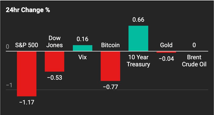The Dow fell 0.53%, the S&P 500 dropped 1.17%, and the Nasdaq sank 2.04%, marking the biggest one-day slide since October 10.