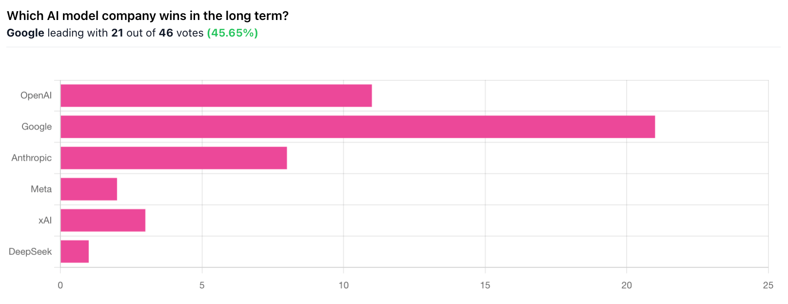 “IMO- ChatGpt won the "proprietary eponym" game. They were the first to become mainstream name and will likely prosper the most long-term. They're the Kleenex of LLMs.“