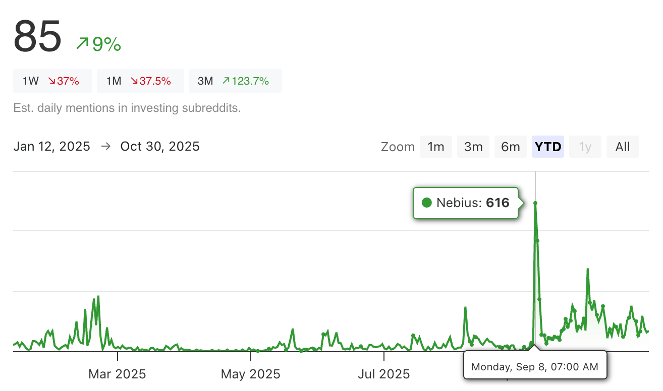📈 Real examples: PLTR up 139%, NBIS up 104% after Reddit spikes