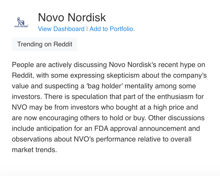 This is a warning signal about NVO. Yes, mentions are up, but sentiment is mixed and some investors suspect a pump from people trying to unload positions. That's very different from organic bullish discovery.